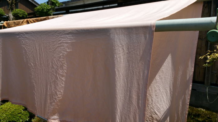 今日は暫くストップしていた柿渋染めです。